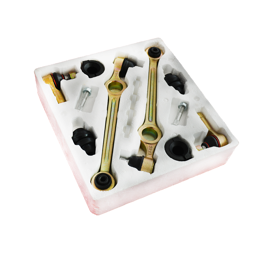 شامل : 2 عدد طبق با بوش لاستیکی ، 2 عدد سیبک فرمان ، 2 عدد لاستیک چاکدار ، 4 عدد لاستیک تعادل ، 2 عدد پیچ و مهره مخصوص طبق ، 4 عدد محافظ پلاستیکی بوش طبق
